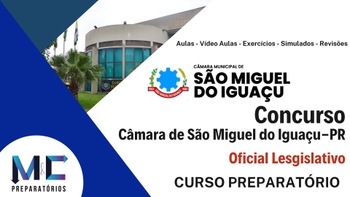 Curso: Câmara Municipal de São Miguel do Iguaçu-PR – Cargo: Oficial Legislativo | Curso Preparatório | Banca UNIOESTE